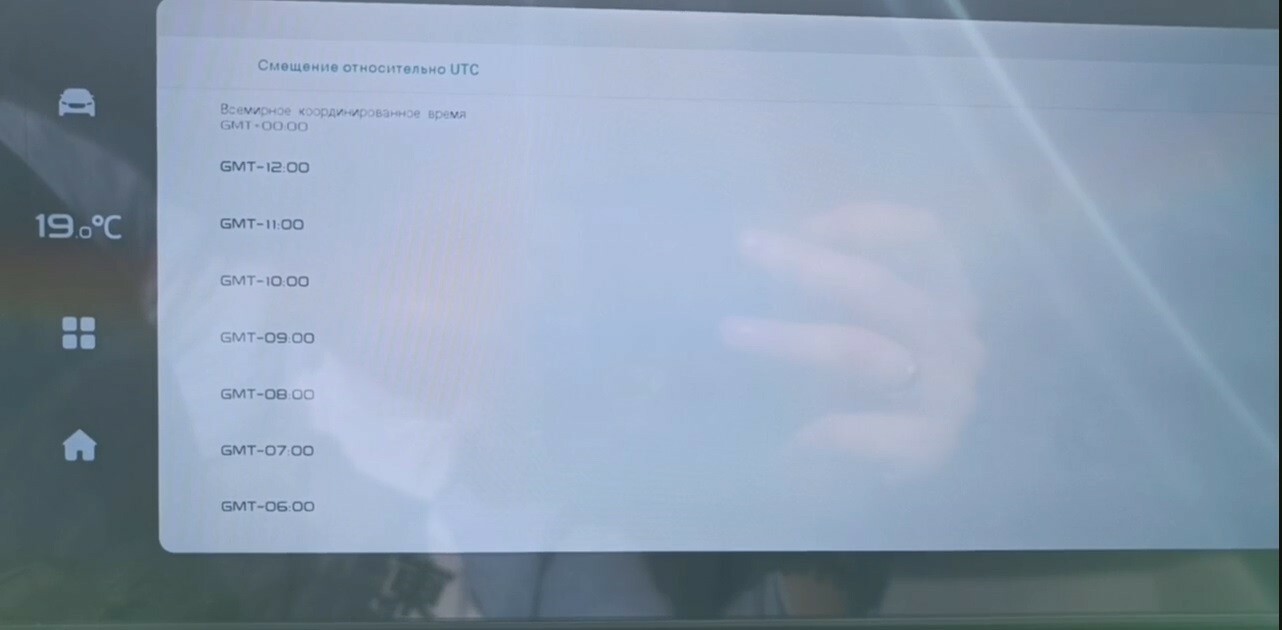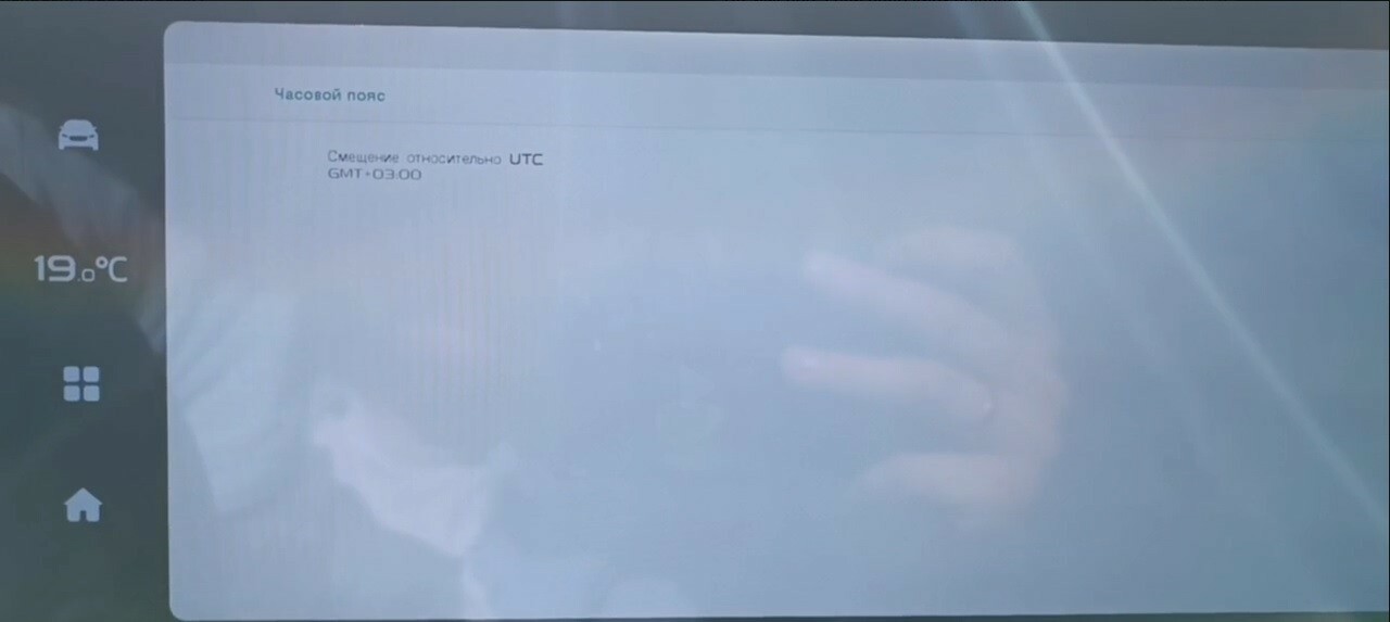 3. Как только появится интернет на ГУ – время в приборной панели и ГУ сменится на китайский часовой пояс. Чтобы исправить это, перейдите в Настройки, раздел «Система», затем «Дата и время». При нажатии на строку «Часовой пояс» отобразится китайский регион и +8 UTC. Не пытайтесь поменять регион — он зашит разработчиками принудительно на китайский, перезапись параметра не происходит.