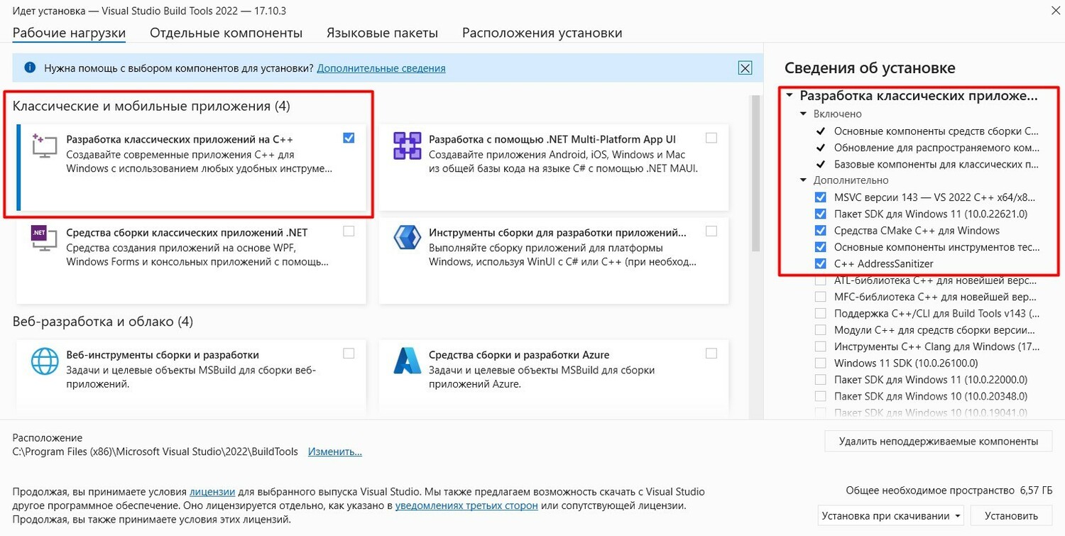 1. Установите BuildTools, при установке выберите Разработка классических приложений на C++:
