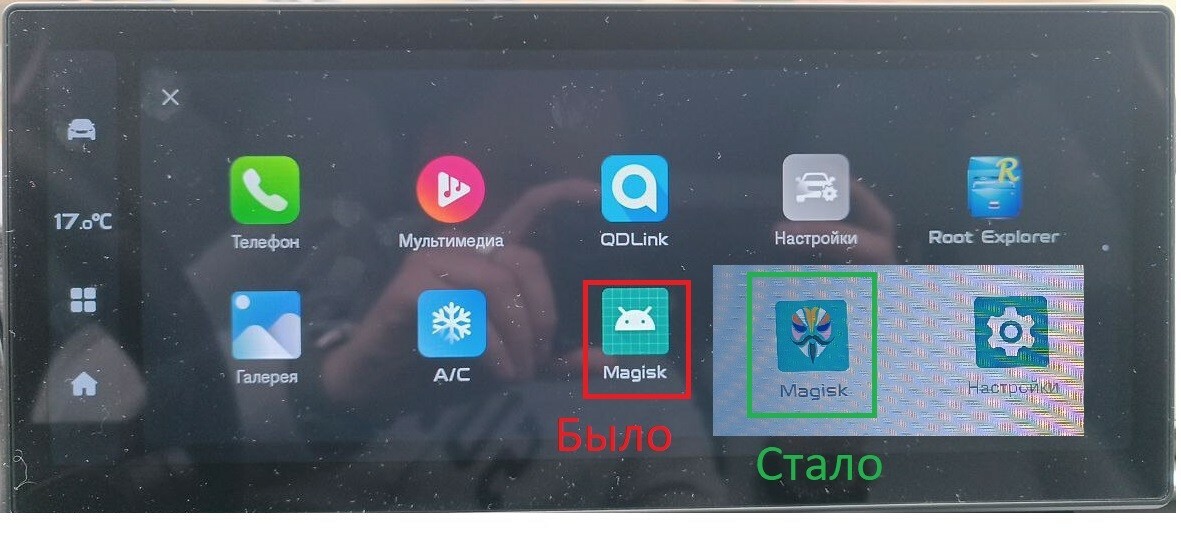 ГУ должно уйти самостоятельно в перезагрузку — так и должно быть После перезагрузки зайдите в меню – если все сделано верно, иконка приложения Magisk изменит свой вид.